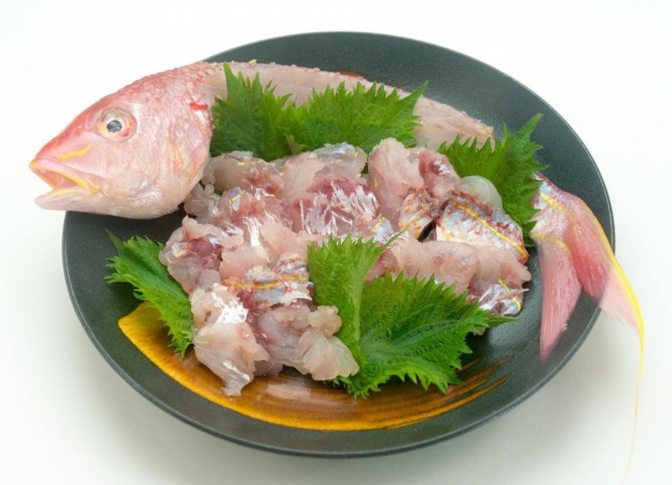 身が柔らかい魚なので、皮付きの「皮霜造り」にするのがおすすめです。皮に熱湯をサッとかけて冷水で締めることで、皮の下の旨味を閉じ込めるとともに、皮の赤い色と黄色の縞模様を鮮やかに活かすことができます。