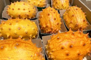 『no.506』(奥)エビ・チュン焼売 600円(手前)手包焼売 スモモとタイム 700円 焼売に合わせるフルーツは季節ごとに変わる。エビ・チュン焼売はチュンピンの皮がプリッとした食感
