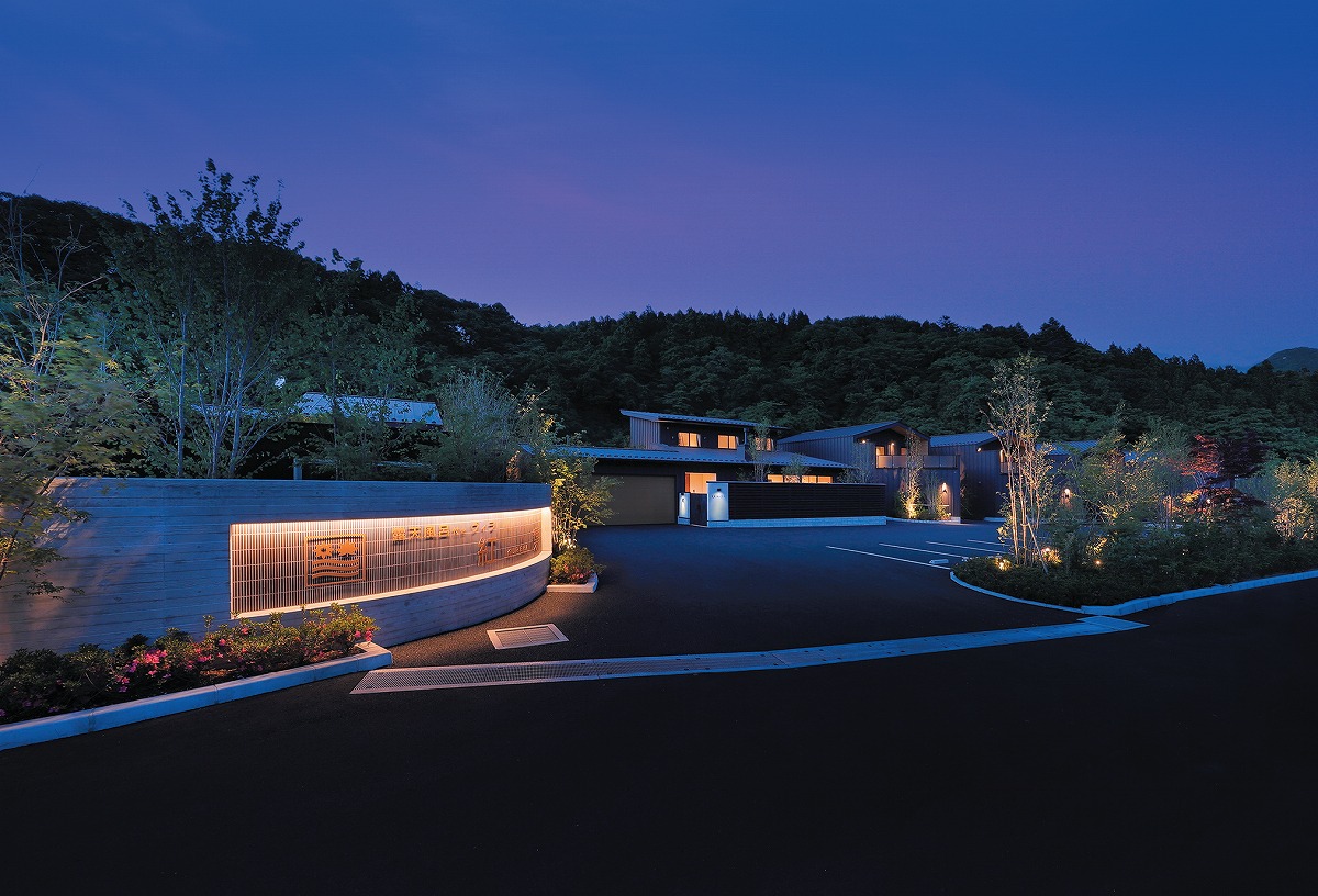 『ぬくもりに心なごむ湯宿 星のあかり』天空テラスと2階の客室露天風呂からは、関東平野や那須岳など屈指の眺望を誇る。夜は満天の星も見える