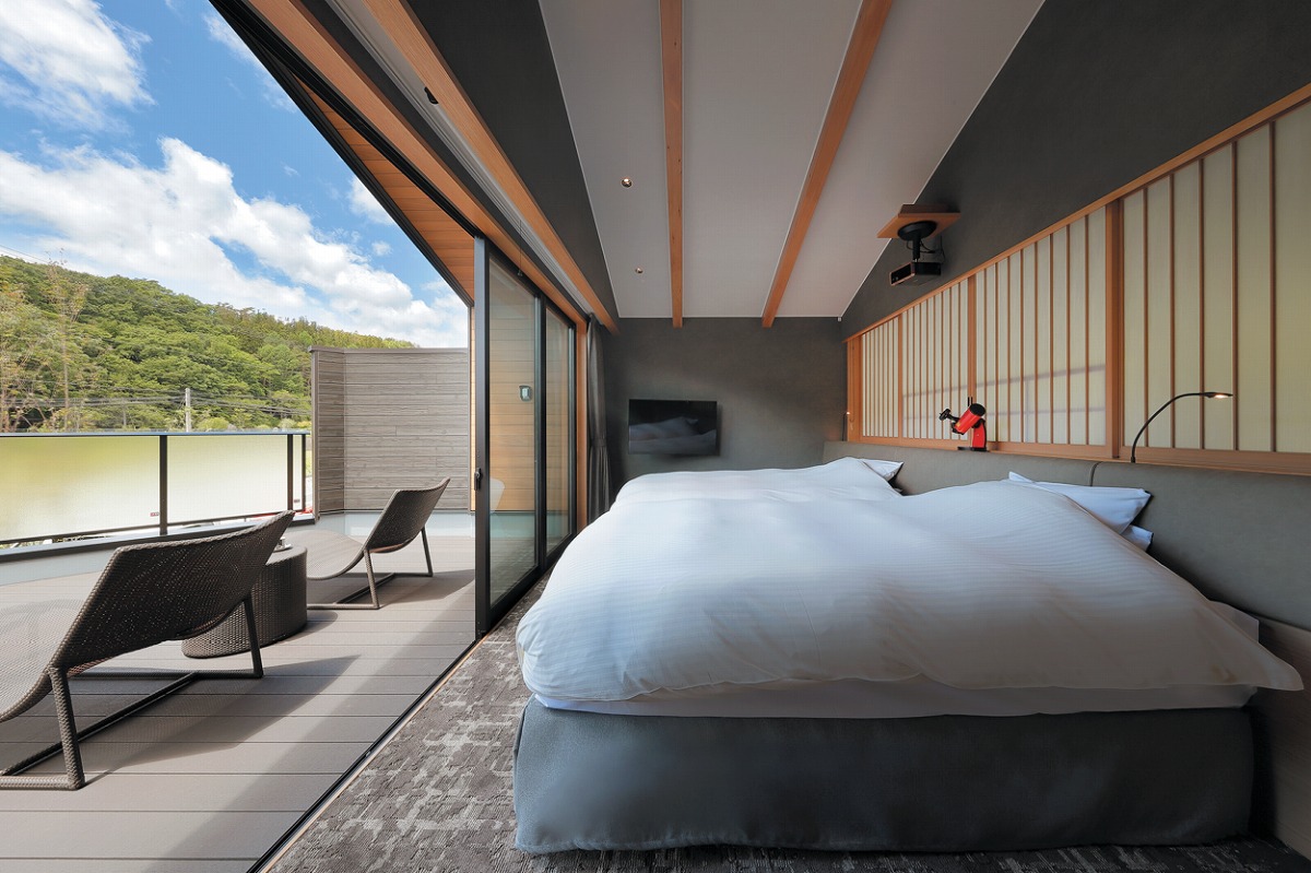 『離れの宿 楓音-kanon-(かのん)』【離れ 特別室】5万2150円〜 宿で最もハイクオリティな和洋室には、庭園や自然を望む広いデッキや大きな露天風呂が備わる