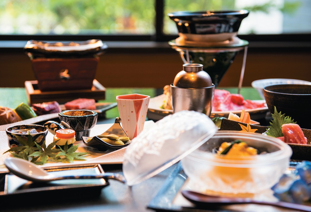『悠久の宿 別邸 蜉蝣の月(かげろうのつき) 月フロア』食事は個室料亭でもいただける(写真は一例)
